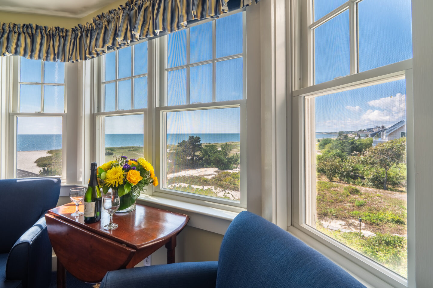 At the aptly named Beach Resort, guests experience a sand-in-the-toes kind of stay. Morning coffee is savored on a porch overlooking the ocean. A “day at the beach” is literally right outside the door. Dining options to fit every taste are within an easy walk. Here too, each room is distinctively decorated, with some paneled in the pristine knotty pine for which “old Cape Cod” is known. Many rooms offer a view of the ocean; all provide the well-appointed respite that every great vacation requires.